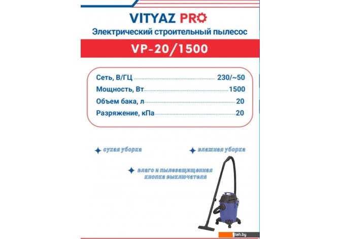 Фотографии, описание и технические характеристики модели пылесоса Vityaz Pro VP20-1500 взяты из открытых источников, официального сайта производителя или представительства Vityaz Pro в Республике Беларусь.