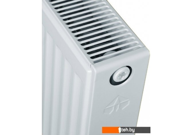 | Информация | Стальной панельный радиатор типа 22 представляет собой двухрядный с двумя конвекторами, расположенными между панелями и приваренными к каждой панели, с верхней воздуховыпускной решеткой и боковыми стенками (2 – две панели, 2 – два конвектора) отопительный прибор с глубиной 102 мм. |