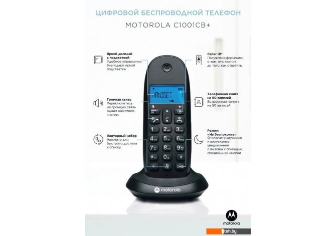 Если хотите купить радиотелефон dect Motorola C1001CB+ (черный) то следует уточнить все параметры и габариты модели перед покупкой. Представленые характеристики на сайте 1teh.by могут отличаться от действительных или указанных производителем. Описание, фото товара и технические характеристики представлены для справки.