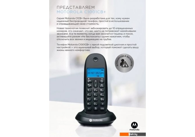 Фотографии, описание и технические характеристики модели радиотелефона Motorola C1001CB+ (черный) взяты из открытых источников, официального сайта производителя или представительства Motorola в Республике Беларусь.