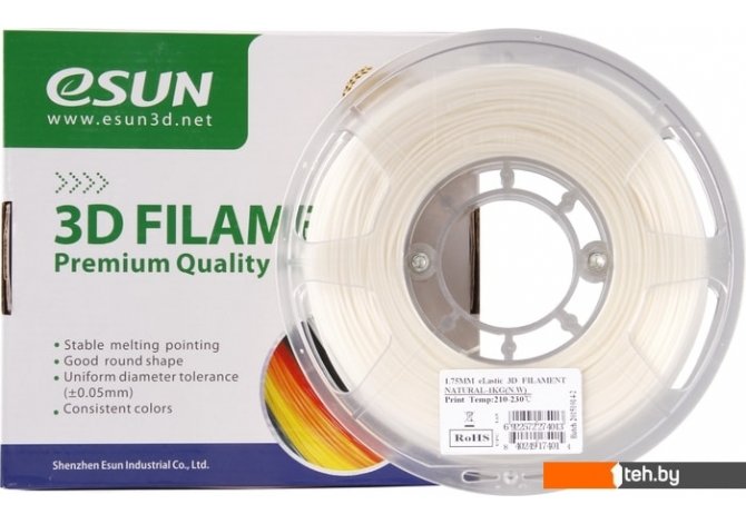 Фотографии, описание и технические характеристики модели eSUN eLastic 1.75 мм 1000 г (натуральный) взяты из открытых источников, официального сайта производителя или представительства eSUN в Республике Беларусь.