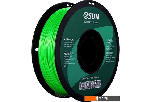 Фотографии, описание и технические характеристики модели eSUN eSilk PLA 1.75 мм 1000 г (зеленый) взяты из открытых источников, официального сайта производителя или представительства eSUN в Республике Беларусь.
