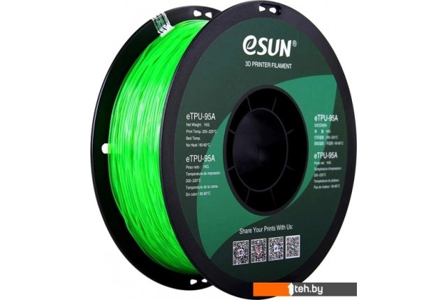 Фотографии, описание и технические характеристики модели eSUN eTPU-95A 1.75 мм 1000 г (зеленый полупрозрачный) взяты из открытых источников, официального сайта производителя или представительства eSUN в Республике Беларусь.
