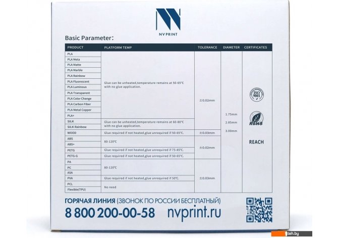 Фотографии, описание и технические характеристики модели NV Print NV-3D-PLA-MARBLE (1.75мм, 1кг, Marble) взяты из открытых источников, официального сайта производителя или представительства NV Print в Республике Беларусь.