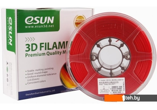 Фотографии, описание и технические характеристики модели eSUN PET-G 1.75 мм 1000 г (красный непрозрачный) взяты из открытых источников, официального сайта производителя или представительства eSUN в Республике Беларусь.