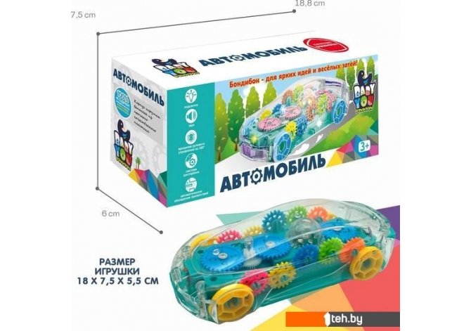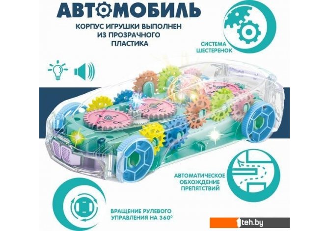 | Информация | Разноцветные шестерёнки весело крутятся в прозрачном корпусе автомобиля! Прозрачный корпус позволяет ребёнку наблюдать, как работает механизм, как стыкуются между собой и вращаются яркие детали игрушки. Музыкальный АВТОМОБИЛЬ С ШЕСТЕРЁНКАМИ от Bondibon способствует развитию интеллектуальных способностей малыша, развивает его любознательность, помогает мелкой моторике, тренирует слуховое и зрительное восприятие. Звуковые и световые эффекты приведут малышей в восторг. Игрушка светится разноцветными огоньками и создает праздничное настроение. Веселые мелодии очень нравятся детям. К тому же машинка не просто едет, она может автоматически обходить препятствия. Ее рулевое управление вращается на 360 градусов. Ударопрочный корпус игрушки непременно порадует родителей. |