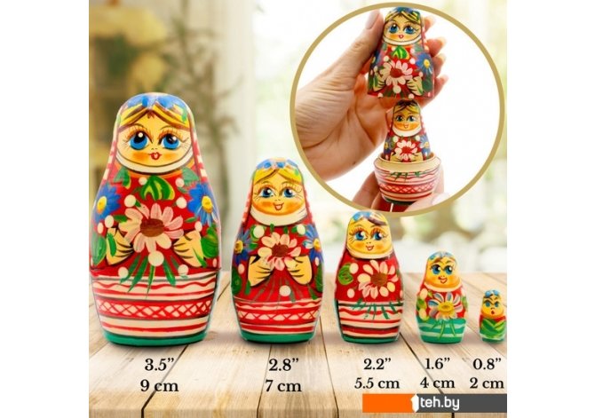 | Информация | ВЕЛИКОЛЕПНЫЙ ДИЗАЙН: Милая белорусская девушка в традиционной одежде с орнаментом, ромашками и голубыми васильками ЭКОЛОГИЧЕСКИЕ МАТЕРИАЛЫ И ВЕРНОСТЬ ТРАДИЦИИ РОСПИСИ: натуральное дерево, краски и лак на водной основе УНИКАЛЬНЫЙ ПОДАРОК: оригинальный предмет декора для гостиной, спальни, детской, а также для офиса, салона ИДЕАЛЬНЫЕ РАЗМЕРЫ: высота самой большой матрешки 9 см, самой маленькой - 2 см |