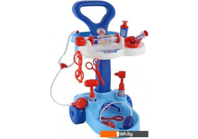 | Информация | Набор доктора на тележке достаточно мобилен и малыш сможет быстро оказать помощь своим пациентам. В этом ему помогут, входящие в набор, ножницы, очки, лупа, шприц, лоточек для шприца, стетоскоп, тонометр, фонендоскоп, молоточек, баночка с крышкой. Возможно, именно с этого набора у будущего врача начнется любовь к медицине. |