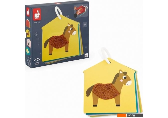 | Информация | Малыши будут исследовать, удивляться и узнавать больше об окружающем мире через прикосновения с тактильными карточками «Ферма»._x000D_ _x000D_ Отправьтесь с ними в путешествие по миру фермы, погладив овцу, свинью, корову, кролика, цыпленка или даже лошадь._x000D_ _x000D_ На картонных карточках нанесены рисунки и разные фактуры материалов, чтобы развить у ребенка осязание._x000D_ _x000D_ Карта «фермы» с отверстием спереди также позволяет вам играть с картами в прятки._x000D_ _x000D_ Состав набора:_x000D_ 6 карточек._x000D_ Соединительное кольцо. |