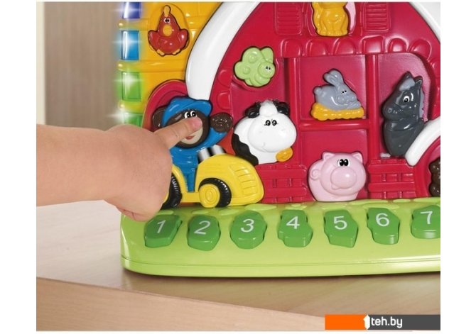 | Информация | Ребенок выучит названия животных, звуки, которые они издают, а так же цвета и числа. Говорящая Ферма имеет 3 уровня сложности обучения, которые способствуют развитию малыша:названия животных и цветов;викторина;мелодии.Постепенно ребенок, экспериментируя, оттачивает свои лингвистические навыки и память.Более 50 слов, вопросов и забаных фраз, мелодий и звуков.Регулируемый уровень громкости.Звуки фермы и огоньки. Чтобы переключится на другой язык - малышу достаточно повернуть переключатель в форме веселого солнышка. |