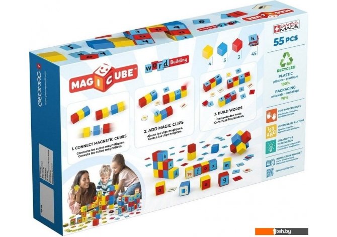 Фотографии, описание и технические характеристики модели Geomag Магнитные кубики собираем слова латинский алфавит GM258 взяты из открытых источников, официального сайта производителя или представительства Geomag в Республике Беларусь.