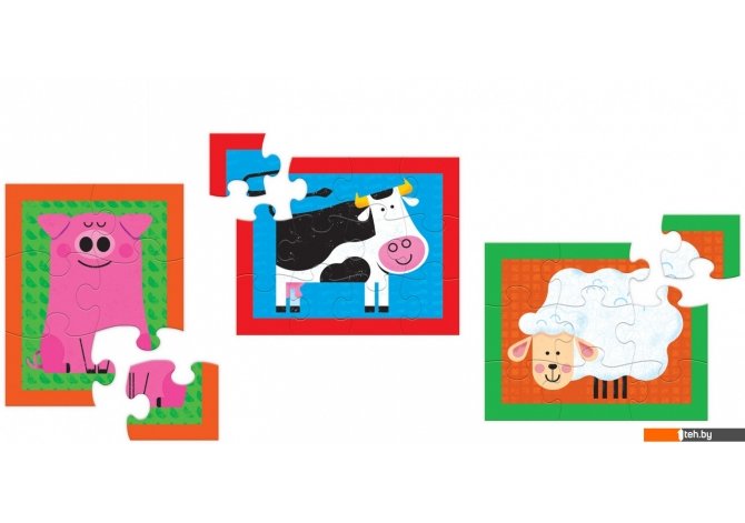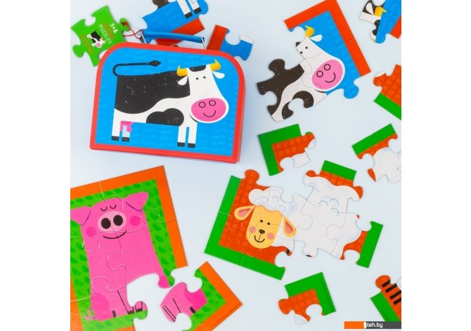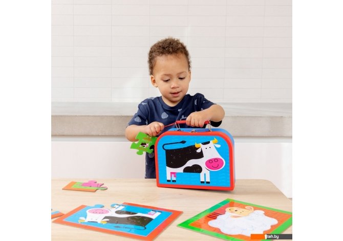 | Информация | - Пазл «Ферма» серии My First Puzzles — отличный вариант подарка для маленьких любителей головоломок. В комплекте три пазла различной сложности, с количеством деталей от 6 до 12. Упакован в прочный футляр-чемоданчик с удобной ручкой для переноски. Игра способствует развитию моторики, концентрации и пространственного мышления. Подходит для детей от 3-х лет. |