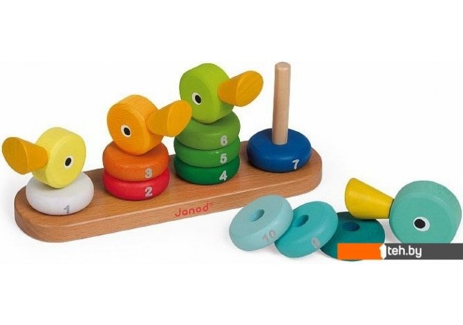 | Информация | Такие забавные утята._x000D_ Игрушка представляет собой ряд из 4 пирамидок в форме утят._x000D_ Пирамидки можно собирать как по соответствию цвета, так и по порядку номеров. |