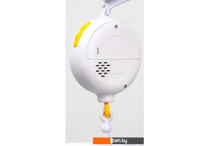 | Информация | Мобиль на кроватку, проигрывающий колыбельные мелодии, отличная игрушка и подарок для малыша от 0 мес. Его можно прикрепить с помощью кронштейна, который идет в комплекте, на кроватку или коляску. Основа с игрушками вращается на 360 градусов. Все погремушки съемные, ими можно играть по отдельности, а также их очень удобно мыть. Мобиль работает от батареек. |