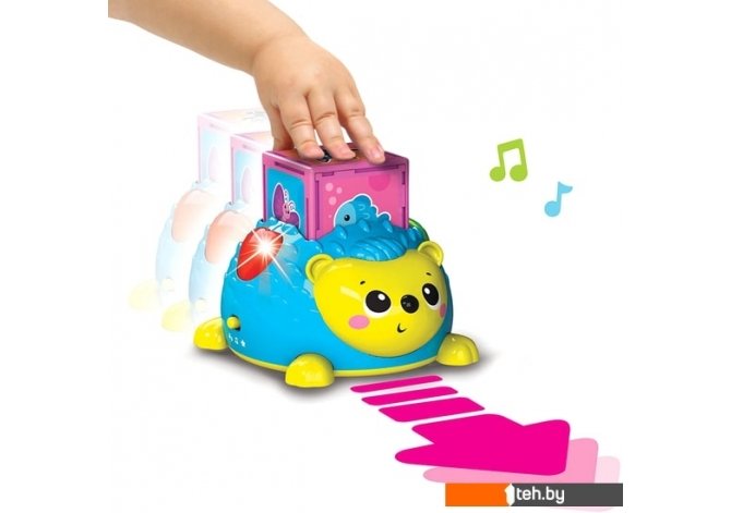 | Информация | Умный ежик при помощи 5 обучающих кубиков поможет малышу выучить цифры, формы и цвета, познакомиться с машинками и животными! Нужно просто вставить кубик и нажать!В игрушке – 30 говорящих картинок, 3 режима («Обучение», «Песенки», «Игры»), а также мигающие огоньки и 10 песенок («Формы разные на свете», «Вот как весело считать», «Цвета радуги», «Светофор», «Безопасность на дороге», «Лето», «Наши друзья», «Стало солнышко теплей», «У бурёнки есть телёнок», «Все зверята любят петь»). |