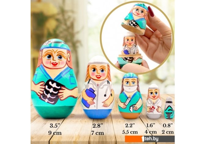 | Информация | ВЕЛИКОЛЕПНЫЙ ДИЗАЙН: Оригинальный подарок врачу в знак благодарности и внимания ЭКОЛОГИЧЕСКИЕ МАТЕРИАЛЫ И ВЕРНОСТЬ ТРАДИЦИИ РОСПИСИ: натуральное дерево, краски и лак на водной основе УНИКАЛЬНЫЙ ПОДАРОК: оригинальный предмет декора для гостиной, спальни, детской, а также для офиса, салона ИДЕАЛЬНЫЕ РАЗМЕРЫ: высота самой большой матрешки 9 см, самой маленькой - 2 см |