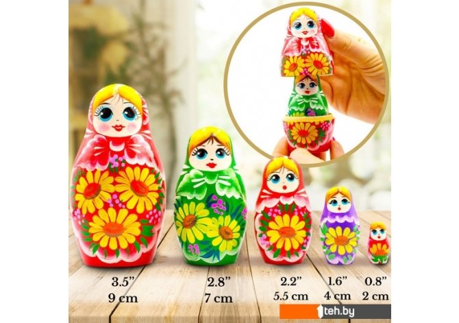 | Информация | ВЕЛИКОЛЕПНЫЙ ДИЗАЙН: Очаровательная русская девушка в ярком платье-сарафане с желтыми герберами ЭКОЛОГИЧЕСКИЕ МАТЕРИАЛЫ И ВЕРНОСТЬ ТРАДИЦИИ РОСПИСИ: натуральное дерево, краски и лак на водной основе УНИКАЛЬНЫЙ ПОДАРОК: оригинальный предмет декора для гостиной, спальни, детской, а также для офиса, салона ИДЕАЛЬНЫЕ РАЗМЕРЫ: высота самой большой матрешки 9 см, самой маленькой - 2 см |