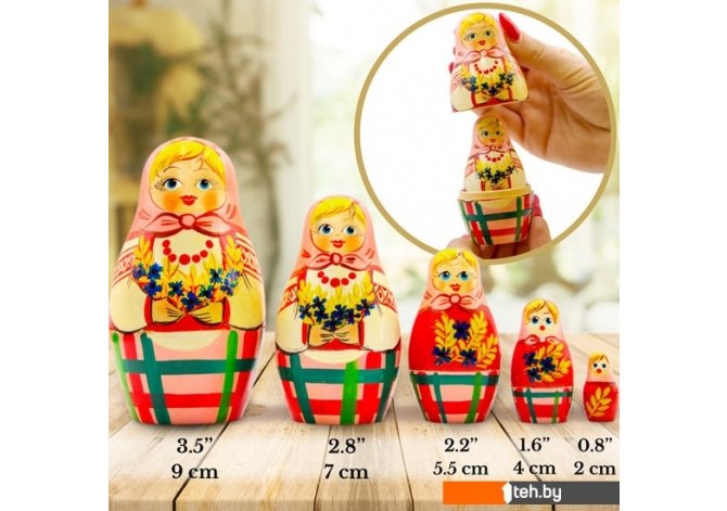 | Информация | ВЕЛИКОЛЕПНЫЙ ДИЗАЙН: Красивая белорусская девушка в традиционном народном костюме с полевыми цветами в руках ЭКОЛОГИЧЕСКИЕ МАТЕРИАЛЫ И ВЕРНОСТЬ ТРАДИЦИИ РОСПИСИ: натуральное дерево, краски и лак на водной основе УНИКАЛЬНЫЙ ПОДАРОК: оригинальный предмет декора для гостиной, спальни, детской, а также для офиса, салона ИДЕАЛЬНЫЕ РАЗМЕРЫ: высота самой большой матрешки 9 см, самой маленькой - 2 см |
