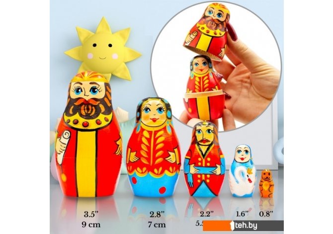 | Информация | ВЕЛИКОЛЕПНЫЙ ДИЗАЙН: Матрешки в виде персонажей пушкинской сказки о Царе Салтане ЭКОЛОГИЧЕСКИЕ МАТЕРИАЛЫ И ВЕРНОСТЬ ТРАДИЦИИ РОСПИСИ: натуральное дерево, краски и лак на водной основе УНИКАЛЬНЫЙ ПОДАРОК: оригинальный предмет декора для гостиной, спальни, детской, а также для офиса, салона ИДЕАЛЬНЫЕ РАЗМЕРЫ: высота самой большой матрешки 9 см, самой маленькой - 2 см |