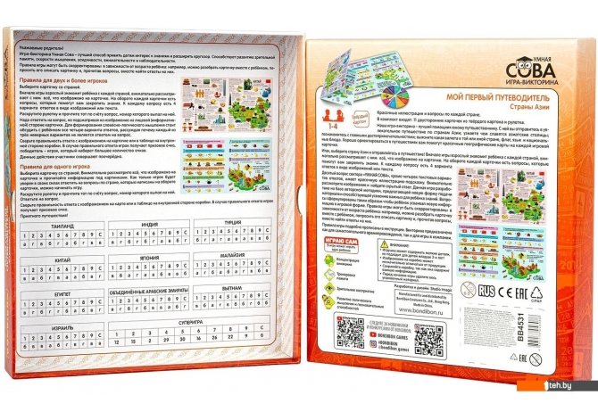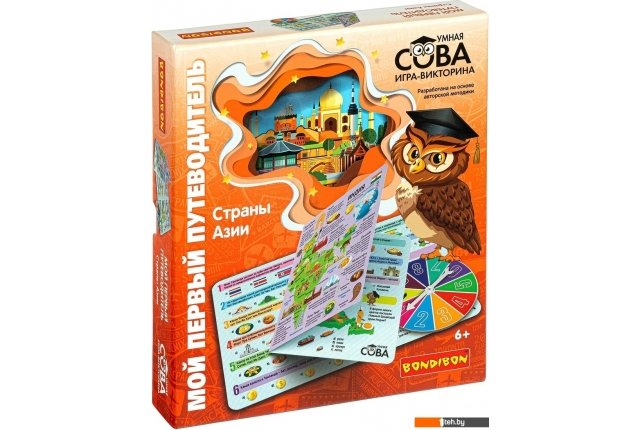 | Информация | Умная сова от Bondibon разработана на основе авторской методики для детей от 6 лет. – лучший помощник юному путешественнику. С ней вы отправитесь в увлекательное путешествие по странам Азии; узнаете, чем славятся азиатские столицы; познакомитесь с главными достопримечательностями; выясните какая валюта в той или иной стране, флаг, язык и национальные блюда. Хорошо ориентироваться в путешествиях вам помогут красочные географические карты на каждой игровой карточке. Итак, выберите страну Азии и отправляйтесь в путешествие!" |