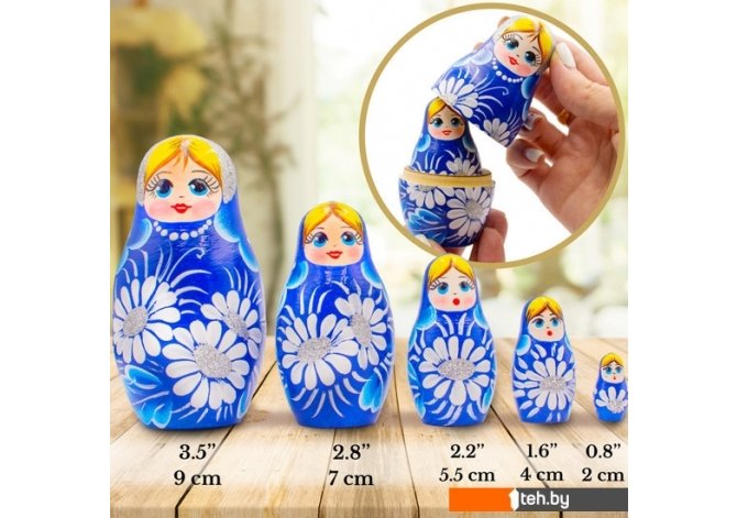 | Информация | ВЕЛИКОЛЕПНЫЙ ДИЗАЙН: Красотка в синем наряде и расписанными вручную ромашками ЭКОЛОГИЧЕСКИЕ МАТЕРИАЛЫ И ВЕРНОСТЬ ТРАДИЦИИ РОСПИСИ: натуральное дерево, краски и лак на водной основе УНИКАЛЬНЫЙ ПОДАРОК: оригинальный предмет декора для гостиной, спальни, детской, а также для офиса, салона ИДЕАЛЬНЫЕ РАЗМЕРЫ: высота самой большой матрешки 9 см, самой маленькой - 2 см |
