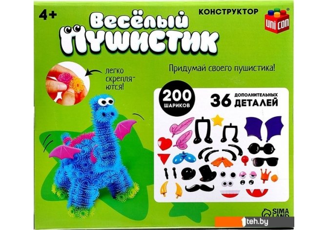 | Информация | Сказки появляются там, где есть «Веселые пушистики». Этот конструктор — начало для невероятных историй, которые только и ждут, чтобы их придумали. Откройте для ребенка мир, где из пушистых шариков и дополнительных деталей можно создать все что угодно — от сказочных животных до невероятных механизмов. Особенности конструктора: Богатый набор: 200 шариков дарят безграничные возможности для творчества. Стилизация: 36 дополнительных деталей помогут придать собранным фигуркам уникальный облик. Безопасность: все элементы конструктора изготовлены из безопасного для детей пластика. Возрастная группа: конструктор подходит для детей от 4 лет и старше. Творческое развитие: помогает развивать мелкую моторику, пространственное мышление и воображение. Фантазия без границ: ребенок может самостоятельно собирать и изменять свои создания бесконечное количество раз. Дополнительно Шарики: 2.3?1.7 см. Шляпки: 3.7?3.5?2.5 см, 3.7?3.5?1.8 см. Корона: 2.5?2.5?2 см. Очки круглые: 5.5?2.2 см. Очки: 5.3?1.7 см. Усы: 5.7?1.3 см. Сердечко: 2.8?2.8 см. Крылья: 6?4 см. Листики: 5.5?2 см. Звездочка: 2.7? 2.7 см. Лапки: 5?3.2 см. Ножки: 4.2?2.2?5.5 см, 3.6?1.7?4 см, 5.2?2.7?1 см. Глазки d=1.6 см, 2.5?1.4 см, d=0.9 см. Рот (2 шт.): 4?1.5 см. Клювик: 1.5?1.2?1.5 см. Круглый нос: d=1.7 см. Лапки: 4?1 см. Рога: 2.7?1.2 см. Треугольник: 2?2 см. |