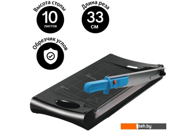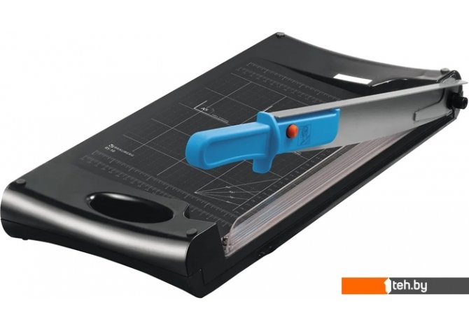 | Информация | Сабельный резак для бумаги BRAUBERG «5 в 1» подходит для домашнего и офисного применения. Позволяет одновременно разрезать до 10 бумажных листов формата А4. Оснащен сабельным резаком с одной стороны, а также роликовым резаком с 3-мя типами резки (прямой, перфорация, волна) и обрезчиком углов с другой стороны, а также автоматическим прижимом для бумаг. Прочное пластиковое основание. Удобная разметка рабочей поверхности позволит точно наметить линию реза. Длина реза составляет 330 мм. Также имеются уголки для форматов А5, А6, А7. Резиновые ножки предотвращают скольжение по рабочей поверхности во время эксплуатации. Размер — 69х284х515 мм. Вес — 2,7 кг. |