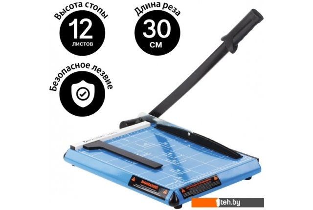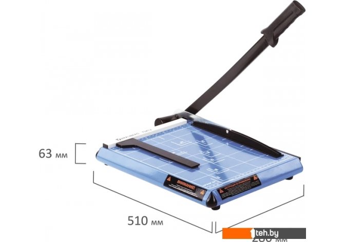 | Информация | Сабельный резак для бумаги BRAUBERG «SABER» подходит для домашнего и офисного применения. Позволяет одновременно разрезать до 12 бумажных листов формата А4. Оснащен безопасным лезвием, регулируемым упором и автоматическим прижимом для бумаг. Рукоятка анатомической формы препятствует соскальзыванию руки. Прочное металлическое основание. Удобная разметка рабочей поверхности и регулируемый упор позволяют точно наметить линию реза. Длина реза составляет 300 мм. Также имеются уголки для форматов А4, B5, А5, B6, B7. Резиновые ножки предотвращают скольжение по рабочей поверхности во время эксплуатации. Размер — 63х280х510 мм. Вес — 2.6 кг. |
