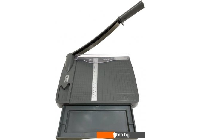 | Информация | Сабельный резак для домашнего и офисного применения для бумаги формата А4. Рабочий стол оснащен удобным встроенным органайзером для хранения канцелярских мелочей. Контрнож позволяет одновременно разрезать до 16 бумажных листов. Съемная рукоятка надежно фиксируется и препятствует соскальзыванию руки. Контрнож сделан из качественного металла. Это позволит быстро и точно разрезать необходимую продукцию. Особенности: Безопасный прижим для стопы бумаги Наличие защитного экрана Разметка рабочего поля в мм Отдельное место для хранения скрепок на рабочей поверхности |