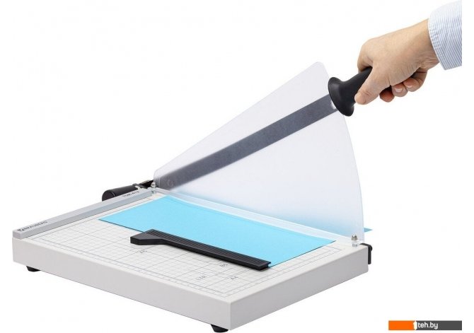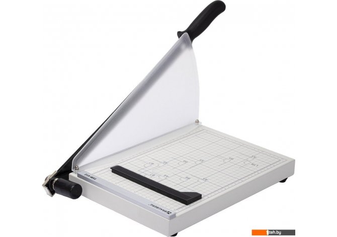 | Информация | Сабельный резак для бумаги подходит для домашнего и офисного применения. Позволяет одновременно разрезать до 12 бумажных листов формата А4. Оснащен безопасным лезвием, регулируемым магнитным упором и прижимом для бумаг. Рукоятка анатомической формы препятствует соскальзыванию руки, а специальное крепление для рукояти зафиксирует её в закрытом положении и предотвратит непреднамеренное поднятие. В резак встроен возвратный механизм, который автоматически поднимает лезвие вверх, что значительно экономит силы при длительном использовании. Пластиковый защитный экран высотой 22 см сделает работу за резаком максимально безопасной. Удобная разметка рабочей поверхности позволяет точно наметить линию реза. Длина реза составляет 340 мм. Также имеются уголки для форматов А4, B5, А5, B6, B7. Резиновые ножки вкупе с прочным металлическим основанием предотвращают скольжение по рабочему столу во время эксплуатации. С сабельным резаком для бумаги выполнять повседневные задачи станет проще, чем когда-либо. Приобретите его и убедитесь в этом сами. |