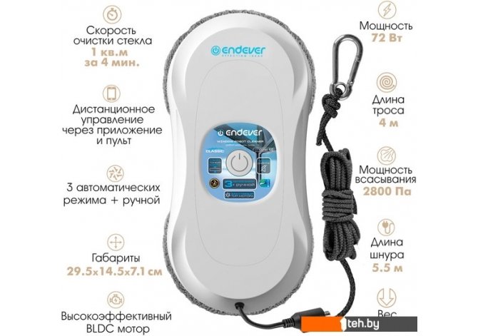 | Информация | Представляем вашему вниманию робот-мойщик окон Endever Skyclean 100 – идеальный помощник для поддержания чистоты и порядка в вашем доме! Этот высокотехнологичный прибор оснащен мощным BLDC мотором, который обеспечивает быструю и качественную очистку стекол и зеркал. Одной из главных особенностей данного робота является его ультратонкий дизайн. Благодаря этому он стал легче и более производительным, обеспечивая безупречную чистоту, за счет уменьшения веса и нагрузки на мотор. Встроенный аккумулятор обеспечивает до 40 минут автономной работы, что позволяет устройству предотвратить падение с окна в случае отключения питания. Робот-мойщик оснащен 3 автоматическими режимами работы, а также возможностью ручного управления. Это позволяет выбрать оптимальный режим в зависимости от степени загрязнения и типа поверхности. Управление устройством осуществляется как с помощью пульта дистанционного управления, так и через мобильное приложение. В комплекте с роботом идут 10 сменных салфеток из микрофибры, которые эффективно удаляют пыль и грязь, не оставляя разводов на стекле. Улучшенный разъем питания постоянного тока обеспечивает надежное подключение к источнику питания, а двойная система безопасности (система бесперебойного питания и страховочный трос) гарантирует безопасность использования устройства. Благодаря функции автоматического определения границ окна и оптимизации маршрута движения, робот-мойщик Endever Skyclean 100 гарантирует быстрое и качественное выполнение своей работы. |