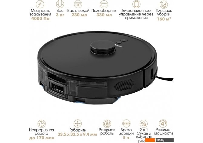 | Информация | - Робот-пылесос Endever Spectre-55 - это инновационное устройство, которое станет незаменимым помощником в уборке вашего дома! Благодаря передовым технологиям и современному дизайну, этот робот-пылесос с легкостью справится с любым загрязнением и позволит вам насладиться идеальной чистотой без лишних усилий. - Одной из главных особенностей робота-пылесоса Endever Spectre-55 является его ультра-высокая мощность всасывания 4000 Па, которая обеспечивает идеально чистый пол в самые короткие сроки. Независимо от типа поверхности - ковер, ламинат, плитка или дерево, этот робот-пылесос справится с задачей на отлично. - Устройство оснащено современной Li-ion батареей емкостью 3200 мА/ч, что обеспечивает длительное время работы до 170 минут без повторной зарядки. А функция зарядки от док-станции позволяет роботу самостоятельно направляться на пополнение энергии, что делает его работу еще более удобной и эффективной. - Endever Spectre-55 оснащен Лидаром, который позволяет роботу оптимально ориентироваться в пространстве и избегать препятствий, а также турбо-щеткой для максимально эффективной уборки даже самых сложных загрязнений. Съемный пылесборник объемом 0,33 л и бак для воды объемом 0,23 л легко очищаются от мусора и моются для длительного использования. - Благодаря 6 режимам работы, вы сможете выбирать оптимальный режим уборки в зависимости от потребностей: от обычной уборки до интенсивной. А съемная насадка из микрофибры обеспечит максимальную чистоту и деликатный уход даже за самыми чувствительными поверхностями. - Endever Spectre-55 оснащен WiFi-модулем с приложением Smart Life, что позволяет управлять устройством из любой точки мира через смартфон. Вы сможете следить за процессом уборки, настраивать режимы работы, создавать расписание уборки и многое другое, все это в удобном и интуитивно понятном приложении. - Онлайн карта уборки в реальном времени позволит вам видеть прогресс уборки на своем смартфоне, контролировать маршруты движения робота и обеспечивать идеальную чистоту вашего дома даже в ваше отсутствие. - Защита от столкновений и падений обеспечивает безопасность робота и предотвращает повреждения мебели и других предметов. Высота препятствия в 20 мм позволяет роботу легко преодолевать пороги и ковровые покрытия, не останавливаясь на полпути. |