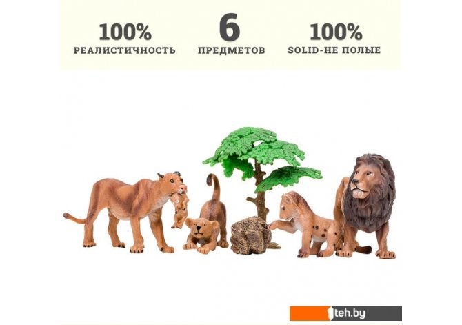 | Информация | Фигурки семья львов являются уменьшенными копиями реальных животных. Фигурки выполнены из высококачественного литого цветного пластика. Игрушка не боится механического воздействия, и надолго сохраняет первоначальный внешний вид. Мелкие детали фигурок прорисовываются вручную безопасными и устойчивыми к внешнему воздействию красителями. Данная технология позволяет получить максимальное сходство с животным. В комплект входят: лев (13,4х4х8 см), львица (13х3х6 см), 2 львенка (8,5х3,4х5 см 9х2,5х6 см), дерово (10х3х2 см), камень (4х4х2 см). К набору идеально подойдут другие животные бренда, выполненные в едином стиле. Набор идеально подходит и в качестве обучающего материала и для увлекательных сюжетных игр детей. Игры с фигурками помогут ребенку познакомиться с миром животных, развивают мышление, фантазию, учат бережно относиться к окружающему миру. Набор фигурок – прекрасный подарок на День рождения или любой другой праздник. Рекомендуется для девочек и мальчиков от 3 лет. |