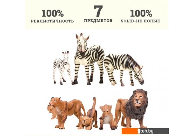 | Информация | Фигурки львов и зебр являются уменьшенными копиями реальных животных. Фигурки выполнены из высококачественного литого цветного пластика. Игрушка не боится механического воздействия, и надолго сохраняет первоначальный внешний вид. Мелкие детали фигурок прорисовываются вручную безопасными и устойчивыми к внешнему воздействию красителями. Данная технология позволяет получить максимальное сходство с животным. В комплект входят: лев (13,4х4х8 см), львица (13х3х6 см), 2 львенка (8,5х3,4х5 см 9х2,5х6 см), дерово (10х3х2 см), 2 зебры (12х2,5х7 см; 12х3х13 см), зебренок (8х2х8 см), дерево (10х3х2 см), камень (4х4х2 см). К набору идеально подойдут другие животные бренда, выполненные в едином стиле. Набор идеально подходит и в качестве обучающего материала и для увлекательных сюжетных игр детей. Игры с фигурками помогут ребенку познакомиться с миром животных, развивают мышление, фантазию, учат бережно относиться к окружающему миру. Набор фигурок – прекрасный подарок на День рождения или любой другой праздник. |
