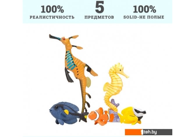 | Информация | Фигурки рыбки-клоуна, рыбы-лисы, рыбки-хирурга, морского конька, морского дракона являются уменьшенными копиями реальных животных. Фигурки выполнены из высококачественного литого цветного пластика. Игрушка не боится механического воздействия, и надолго сохраняет первоначальный внешний вид. Мелкие детали фигурок прорисовываются вручную безопасными и устойчивыми к внешнему воздействию красителями. Данная технология позволяет получить максимальное сходство с животным. В комплект входят: рыбка-клоун (7х4х3,5 см), рыба-лиса ( 6,5х4х3,5 см), рыбка-хирург (8,5х5х4 см), морской конек (12,5х5,5х3 см), морской дракон (19,5х7х1,5 см). К набору идеально подойдут другие животные бренда, выполненные в едином стиле. Набор идеально подходит и в качестве обучающего материала и для увлекательных сюжетных игр детей. Игры с фигурками помогут ребенку познакомиться с миром животных, развивают мышление, фантазию, учат бережно относиться к окружающему миру. Набор фигурок – прекрасный подарок на День рождения или любой другой праздник. |