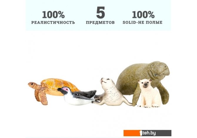 | Информация | Фигурки ламантина, морской черепахи, тюленя, пингвина, белого медвежонка являются уменьшенными копиями реальных животных. Фигурки выполнены из высококачественного литого цветного пластика. Игрушка не боится механического воздействия, и надолго сохраняет первоначальный внешний вид. Мелкие детали фигурок прорисовываются вручную безопасными и устойчивыми к внешнему воздействию красителями. Данная технология позволяет получить максимальное сходство с животным. В комплект входят: ламантин (15,5х5х6 см), морская черепаха (9,4х4х6,5 см), тюлень (10,5х4,5х6,5 см), пингвин (8х6,2х3 см), белый медвежонок (3х3х4 см). К набору идеально подойдут другие животные бренда, выполненные в едином стиле. Набор идеально подходит и в качестве обучающего материала и для увлекательных сюжетных игр детей. Игры с фигурками помогут ребенку познакомиться с миром животных, развивают мышление, фантазию, учат бережно относиться к окружающему миру. Набор фигурок – прекрасный подарок на День рождения или любой другой праздник. |