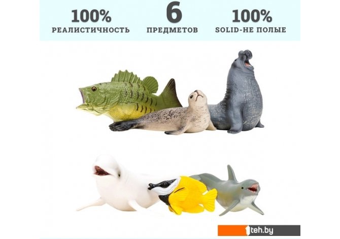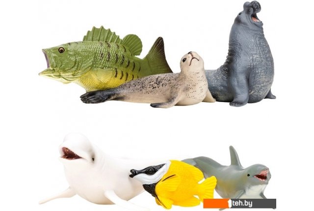 | Информация | Фигурки белухи, тюленя, дельфина, рыбы-лисы, морского слона, окуня являются уменьшенными копиями реальных животных. Фигурки выполнены из высококачественного литого цветного пластика. Игрушка не боится механического воздействия, и надолго сохраняет первоначальный внешний вид. Мелкие детали фигурок прорисовываются вручную безопасными и устойчивыми к внешнему воздействию красителями. Данная технология позволяет получить максимальное сходство с животным. В комплект входят: белуха (18х9,2х5 см), тюлень (10,5х4,5х6,5 см), дельфин (12х5х4,5 см), рыба-лиса (6,5х4х3,5 см), морской слон (11х8х8,5 см), окунь (11,5х3,5х6 см). К набору идеально подойдут другие животные бренда, выполненные в едином стиле. Набор идеально подходит и в качестве обучающего материала и для увлекательных сюжетных игр детей. Игры с фигурками помогут ребенку познакомиться с миром животных, развивают мышление, фантазию, учат бережно относиться к окружающему миру. Набор фигурок – прекрасный подарок на День рождения или любой другой праздник. |