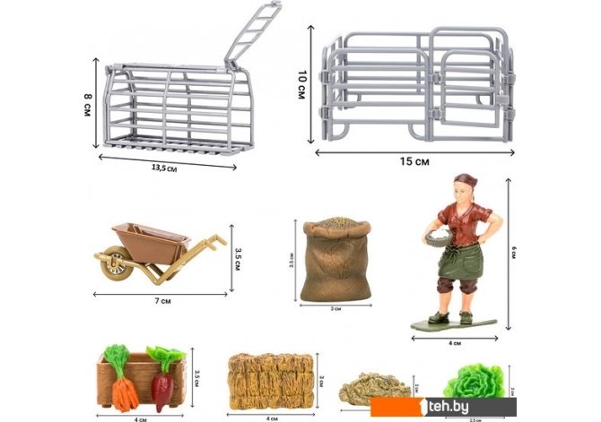 | Информация | ОсобенностиНабор фигурок и игрового домика являются уменьшенными копиями реальных животных, людей и зданий. Большой игровой домик требует быстрой и легкой сборки. Игрушка не боится механического воздействия, и надолго сохранят первоначальный внешний вид. Мелкие детали фигурки прорисовываются вручную устойчивыми к внешнему воздействию красителями. Данная технология позволяет получить максимальное сходство с реальными животными. Под ногами фигурок имеется имитация земли/травы для большей устойчивости фигурки. Набор идеально подходит и в качестве обучающего материала и для увлекательных сюжетных игр детей. Игры с домиком и с фигурками помогают ребенку познакомиться с животными и жизнью на ферме, развивают мышление, фантазию, учат бережно относиться к окружающему миру. Комплектация Игровой набор |