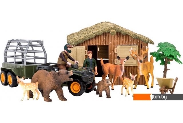 | Информация | ОсобенностиНабор фигурок и игрового домика являются уменьшенными копиями реальных животных, людей и зданий. Большой игровой домик требует быстрой и легкой сборки. Игрушка не боится механического воздействия, и надолго сохранят первоначальный внешний вид. Мелкие детали фигурки прорисовываются вручную устойчивыми к внешнему воздействию красителями. Данная технология позволяет получить максимальное сходство с реальными животными. Под ногами фигурок имеется имитация земли/травы для большей устойчивости фигурки. В комплект входит 14 предметов: домик (20х16х14), квадроцикл (11,5х9х6,5 см), прицеп (16,5х9х6,5), клетка (13,5х8х5,5), фигурка мужчины (3х6х3), фигурка водителя (3х5х3), олени 4 шт (9х9х5; 8х8х3; 5х5х2; 5х5,5х3), медведи 2 шт (11х6,5х5; 6,5х4х2,5), тележка (7х3,5х3,5), дерево (3х10х3). К набору идеально подойдут другие животные бренда, выполненные в едином стиле. Комплектация 14 предметов |