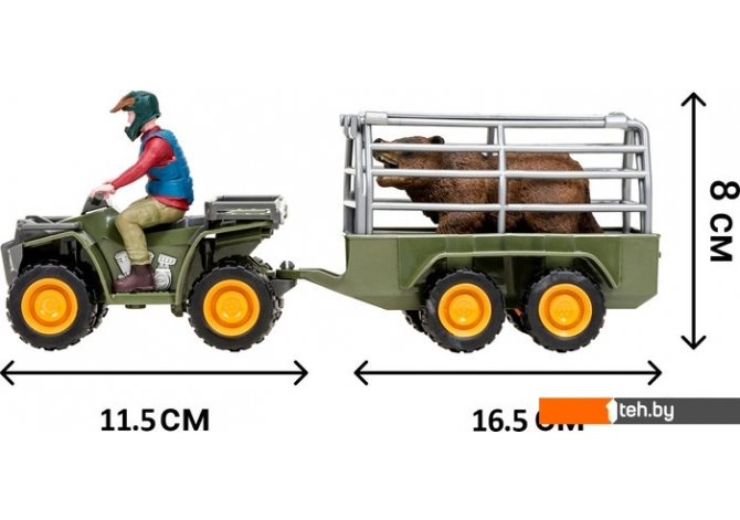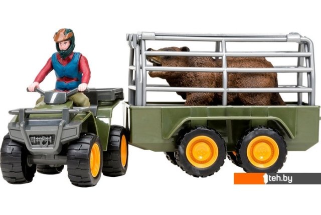 | Информация | ОсобенностиНабор фигурок являются уменьшенными копиями реальных животных, людей и зданий. Игрушка не боится механического воздействия, и надолго сохранят первоначальный внешний вид. Мелкие детали фигурки прорисовываются вручную устойчивыми к внешнему воздействию красителями. Под ногами фигурок имеется имитация земли/травы для большей устойчивости фигурки. Данная технология позволяет получить максимальное сходство с реальными животными. В комплект входит 3 предмета: медведь (11х6,5х5 см), фигурка человека (8х3х3 см), трактор с прицепом с клеткой (8х8х5 см, 7х8х5 см). К набору идеально подойдут другие животные бренда, выполненные в едином стиле. Набор идеально подходит и в качестве обучающего материала и для увлекательных сюжетных игр детей. Игры с фигурками помогают ребенку познакомиться с животными на ферме, развивают мышление, фантазию, учат бережно относиться к окружающему миру. Набор фигурок-прекрасный подарок на День рождения или любой другой праздник. Комплектация Игровой набор |