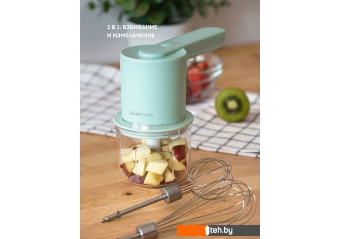 | Информация | Миксер аккумуляторный 2 в 1 GALAXY LINE GL2234 – предназначен для взбивания, смешивания и измельчения ингредиентов и продуктов.  5 скоростей позволяют выбрать необходимую скорость согласно рецепта. Насадка-венчик подходит для взбивания и смешивания жидких ингредиентов. Насадка для взбивания крема подходит для перемешивания ингредиентов с густой консистенцией. Трехлопастный нож и чаша объемом 300 мл позволяют измельчать продукты подобно чопперу.  |