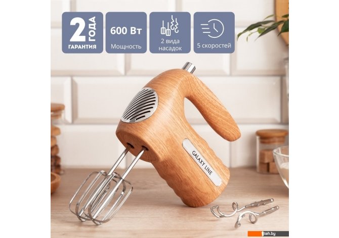 | Информация | Стильный электрический миксер GALAXY LINE с двумя видами насадок легко и быстро поможет взбить крем, приготовить соус или замесить жидкое тесто. Благодаря удобной кнопке переключения вы сможете выбрать 1 из 5 скоростей для взбивания или смешивания ингредиентов согласно рецепту. Насадки-венчики позволяют смешивать и взбивать ингредиенты до идеального результата – от яичных белков и взбитых сливок до жидкого теста, соусов и других блюд. Прочные насадки для замешивания теста быстро приготовят тесто средней густоты для пудингов и бисквитов. Удобно расположенная кнопка извлечения насадок позволяет легко менять венчики и упрощает уход за миксером после окончания работы. Благодаря стильному дизайну миксер гармонично впишется в интерьер вашей кухни и не займет много места. Книга рецептов в комплекте позволит разнообразить рацион питания вашей семьи. |