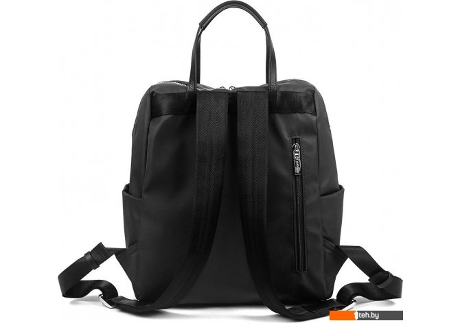 | Информация | - Текстильный рюкзак изготовлен из высококачественного полиэстера, который защищает от влаги и температурных колебаний. Кожаная отделка придает ему стильный вид и дополнительную прочность.  - Рюкзак сохраняет свою форму и имеет основное отделение, закрывающееся на полукруглую молнию с двумя бегунками. Внутри предусмотрены 4 боковых кармана: 3 открытых и один на молнии, что обеспечивает удобство хранения. - На лицевой и тыльной сторонах также есть карманы на молнии, а по бокам расположены открытые карманы для быстрого доступа. Сверху находятся 2 кожаные ручки для удобного ношения в руке. - Регулируемые текстильные лямки шириной 4 см позволяют адаптировать рюкзак под любые параметры. Он вмещает формат А4, что делает его идеальным для учебы или работы. - Цвет фурнитуры — серебро, а вес рюкзака составляет 850 г. Размеры: 30?32?15 см.  |