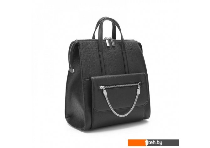 | Информация | Стильный женский рюкзак выполнен из натуральной твердой зернистой кожи. Снаружи: на лицевой стороне накладной карман на магните, украшен цепочкой. Декорирован серебристой фурнитурой. |