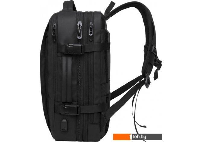 | Информация | Рюкзак обладает невероятной вместительностью для переноски всех необходимых вещей. В нем предусмотрено 4 объемных отсека, которые закрываются двойными молниями. Для надежности они фиксируются несколькими крепежными лентами на карабинах. При необходимости рюкзак может быть увеличен в объеме с помощью вертикальной молнии, которую следует расстегнуть. По своей функциональности этот рюкзак напоминает малогабаритный чемодан. Так, одни из его отсеков полностью открывается, как крышка чемодана, обеспечивая свободный доступ к вещам. Для удобства они накрываются сетчатой перегородкой на молниях. С другой стороны располагается небольшой сетчатый карман для быстрого доступа к содержимому.В отсеке ближе к спинке находится усиленная часть с карманами для ноутбука на 15,6 дюймов и планшета. Пара карманов для мелочей располагается на передней панели рюкзака. Их молнии скрыты под тканевым слоем. Имеет сетчатую вентилируемую спинку, мягкие лямки, регулируемые по длине, целых три ручки для переноски изделия в руках: две мягкие, а третья — тканевая. Одна из этих ручек позволяет носить рюкзак как дорожную сумку. На спинке находится потайной карман для ценных вещей и багажный ремень для закрепления на ручке дорожной сумки. Для равномерного распределения нагрузки лямки соединяются лентой с карабином. На одной из сторон расположился внешний USB-выход. |