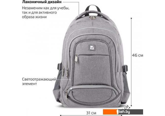 Информация | Вместительный и функциональный рюкзак BRAUBERG для старшеклассников и студентов. Формоустойчивая спинка и анатомические плечевые ремни обеспечивают максимальное удобство в эксплуатации. Отлично подойдет как для учебы, так и для активного образа жизни. Три вместительных отделения и карманы обеспечивают оптимальную функциональную организацию. Особенности: — рюкзак произведен из высококачественных материалов, стойких к износу и истиранию; — светоотражающий элемент на фронтальный стороне повысит безопасность владельца в темное время суток; — формоустойчивая спинка и эргономичные регулируемые плечевые ремни анатомической формы, оснащенные пропускающей воздухонабивной подкладкой, обеспечивают максимальный комфорт при ношении рюкзака; — прочная и мягкая эргономичная ручка позволяет комфортно носить рюкзак не только на спине, но и в руках; — каждое отделение рюкзака имеет долговечную реверсивную молнию с двумя металлическими бегунками; — рюкзак имеет достаточно большой объём (30 литров), но при этом не кажется громоздким благодаря своей конструкции. Если рюкзак не заполнен полностью, его можно уплотнить боковыми стягивающими ремнями, придав аккуратную форму и внешний вид; — рюкзак имеет боковые карманы из эластичной сетки, которые подходят для хранения бутылок с водой и зонта, карман на молнии на передней стенке. |
