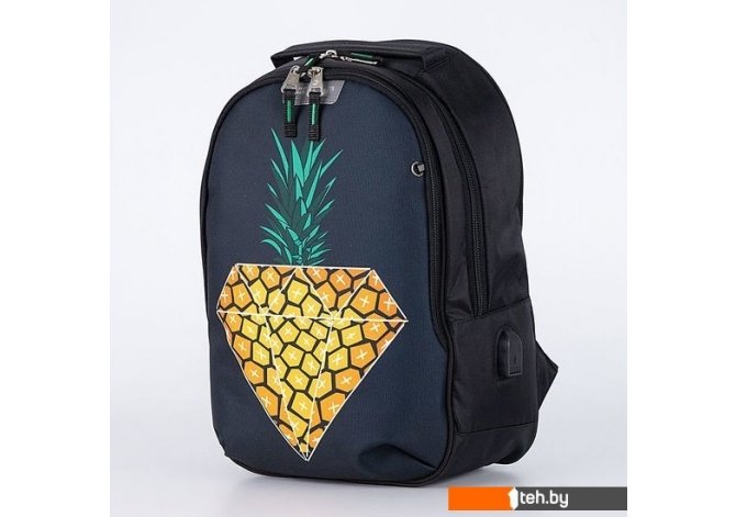 | Информация | Рюкзак выполнен из прочного практичного полиэстера в сочетании черного и синего цвета. Декорирован оригинальным принтом с изображением ананаса. Модель закругленной формы, с удобной ручкой, лямкой и широкими мягкими регулируемыми плечевыми лямками, выполненными из дышащего материала; имеются светоотражатели, повышающие безопасность в темное время. Два отделения на молнии, с влагостойкой текстильной подкладкой. В основном отделении: большой накладной карман на резинке, внизу — карман-сетка. Также в отделении имеется USB-кабель для внешнего портативного аккумулятора Power Bank (зарядное устройство), при подключении которого можно подзаряжать гаджеты через USB-разъем, расположенный снаружи сбоку. Кабель подключается через карман на молнии. В переднем отделении — накладной карман-органайзер для канцелярских принадлежностей. Ортопедическая спинка с мягкими анатомическими накладками выполнена из дышащего материала и обеспечивает комфорт и формирование правильной осанки. На передней стороне — кольцо для крепления брелока. Дно оснащено пластиковыми ножками от износа. Яркий современный дизайн и функциональность рюкзака, без сомнения, понравятся ученикам средней школы, а также подойдет для повседневного использования. |