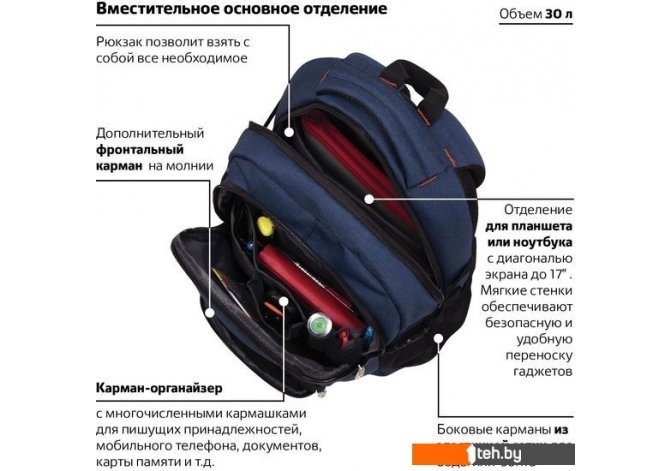 | Функциональные отделения/карманы | для ноутбука, для смартфона, органайзер |