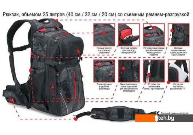 | Внешние карманы | боковой, передний (фронтальный), на поясном ремне |