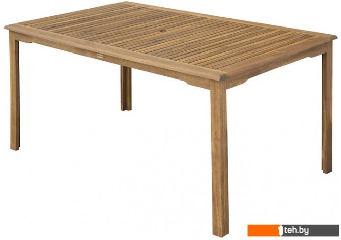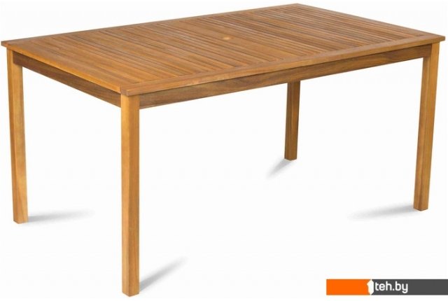 | Информация | ? Прямоугольный стол размером 150 x 90 см. ? Идеален в сочетании с 4 креслами или 2 креслами со скамьей. ? В центре стола имеется стандартное отверстие для установки зонта от солнца. ? Стол изготовлен из тропической древесины акации, что позволяет использовать его как в помещении, так и на открытом воздухе. |